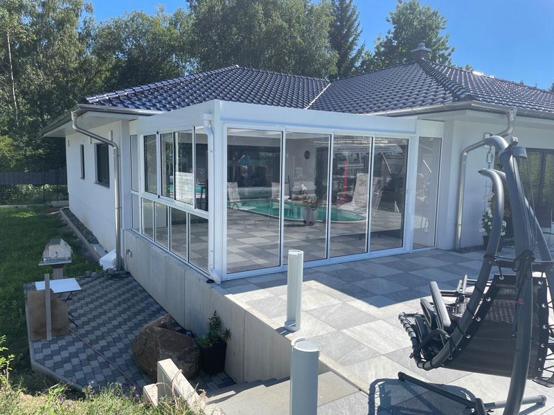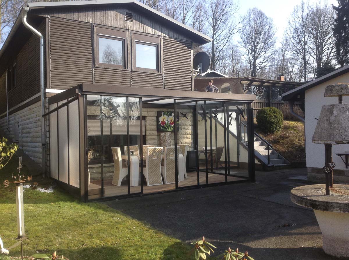 Schiebe-Elemente der Firma Original Henkel Alusysteme ® sind die ideale Ergänzung für Überdachung, Wintergarten oder Carport, um sich oder Wertgegenstände noch besser vor Regen und Wind zu schützen, ohne jedoch Offenheit und Flexibilität bei schönem Wetter einzubüßen.